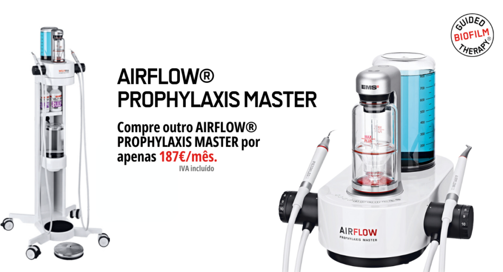 O AIRFLOW® Prophylaxis Master é a mais recente inovação da EMS para a “Guided Biofilm Therapy”: uma solução única para prevenção e manutenção de cáries e periodontite. Criado para uso profissional intensivo, o dispositivo é caracterizado por uma ergonomia única, alta precisão, fácil manutenção e em conformidade com os mais altos padrões de higiene. O AIRFLOW® Prophylaxis Master foi projetado com os mais altos padrões de desempenho, segurança e conforto em mente, sendo construído especificamente para atender aos 3 tratamentos principais do Guided Biofilm Therapy